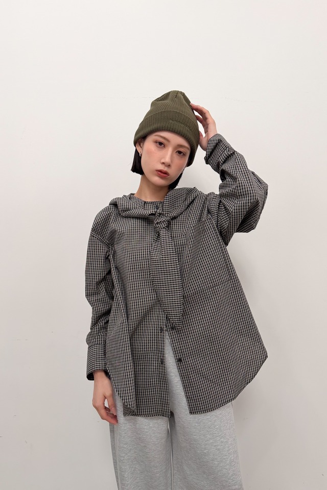 【STYLING】 フード付きのチェックシャツに、首元のタイディテールを効かせた“ひとクセ”デザイン。シャツのきちんと感とフードのラフさが混ざり合って、合わせるだけでこなれたバランスに仕上がります。ゆったりめのシルエットとヒップまで隠れる丈感で、体のラインを拾いにくいのも嬉しいポイント。前を閉じてトップスとしても、ボタンを開けて羽織りとしても使えて、季節のつなぎにも頼れる一枚です。 【商品ポイント】 ・フード×チェックの組み合わせで、カジュアルに寄せすぎず洒落感をプラス ・首元のタイディテールがアクセントになり、顔まわりに立体感が出るデザイン ・ゆったりシルエットで重ね着しやすく、体型カバーにも◎ ・ヒップまで届く丈感でボトムを選ばずバランスが取りやすい ・前開き仕様で、トップス/ライトアウターの2WAY感覚で着回せる 【スタイリング提案】 ラフに着ても“きちんと見え”が残る万能シャツ。 ・スウェットパンツ合わせ:抜け感のある大人のカジュアルに ・デニム/ワイドパンツ:シャツの柄を主役にしてこなれた印象へ ・タートルやロンTをイン:レイヤードが映えて季節感もUP ・ロングスカート合わせ:甘さを抑えたミックススタイルにまとまる ・足元はスニーカーで軽く、ブーツで締めるとより大人っぽく着地 【おすすめしたい方】 ・シンプルコーデに“ポイント”が欲しい方 ・シャツのきちんと感とラフさ、どちらも欲しい方 ・重ね着しやすい羽織りアイテムを探している方 ・体のラインを拾いにくい、ゆるめシルエットが好きな方 <SIZE>ONE SIZE(フリーサイズ) 着丈75cm 身幅60cm 〈モデルサイズ〉160cm 商品No:345546 ※輸送時による多少の汚れ・シワがある場合がございます。 ※撮影時のライティング、ご覧になっているモニター・PC環境により実際の商品と色味やイメージが異なって見える場合がございます。ご了承の上、お買い求め下さい。 ※商品のお取扱いに関しましては、商品に付属のアテンションカード、洗濯ネームをご覧ください。