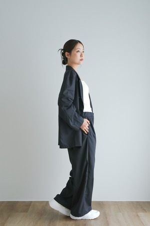 ・ジャケットを羽織れば、セットアップ風で大人っぽいスタイルに。