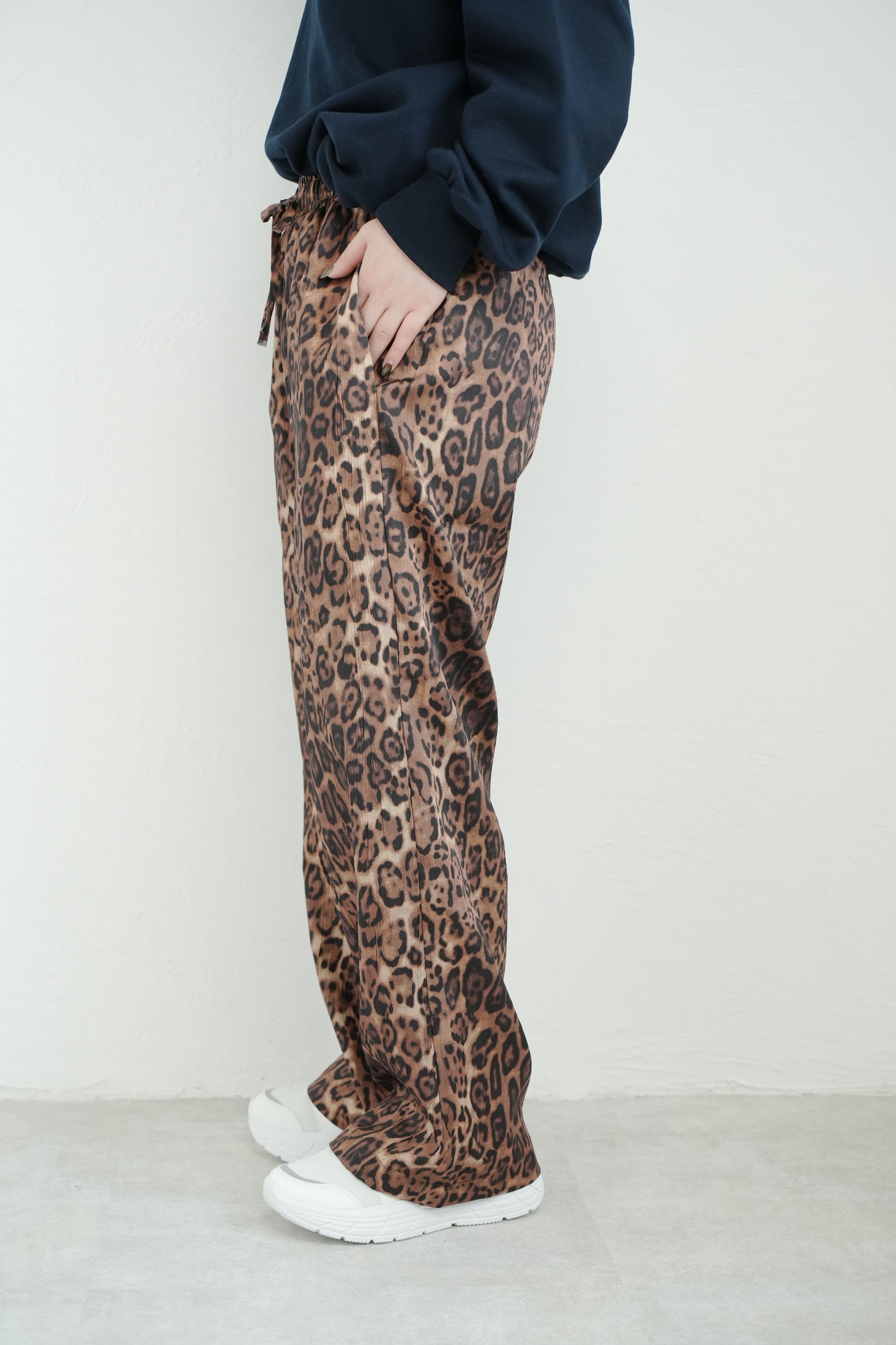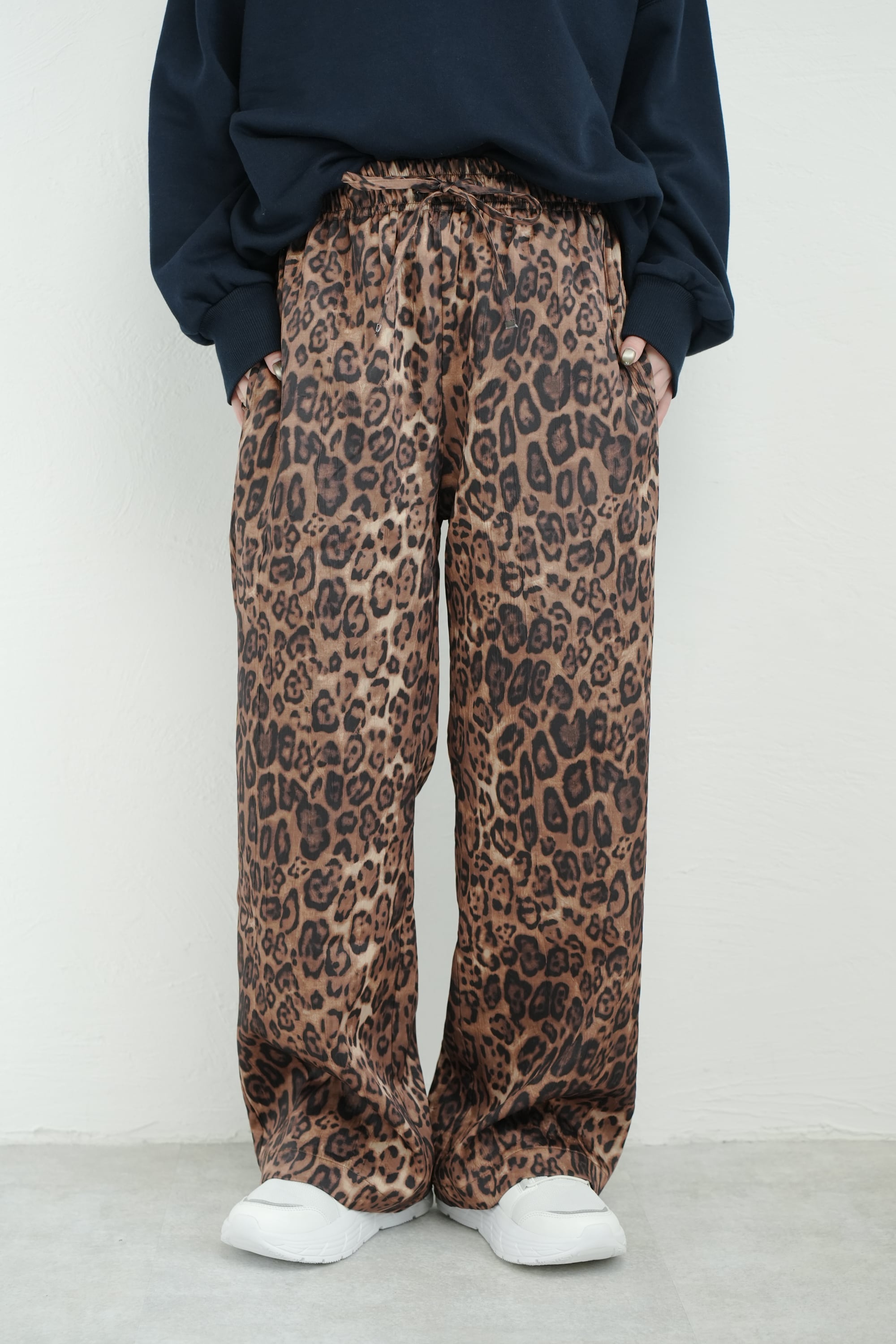 印象的なレオパード柄がスタイリングの主役になるワイドパンツ。