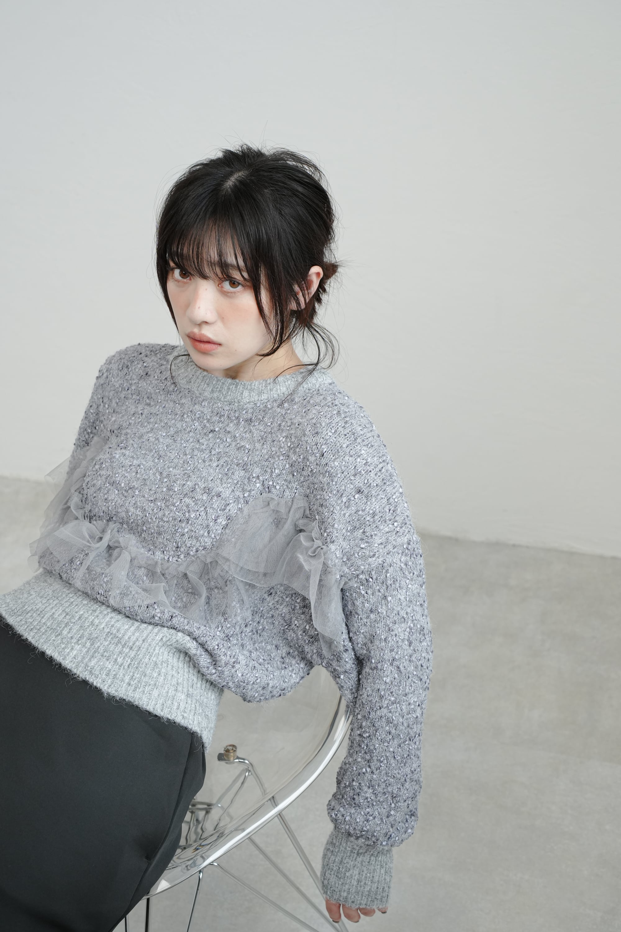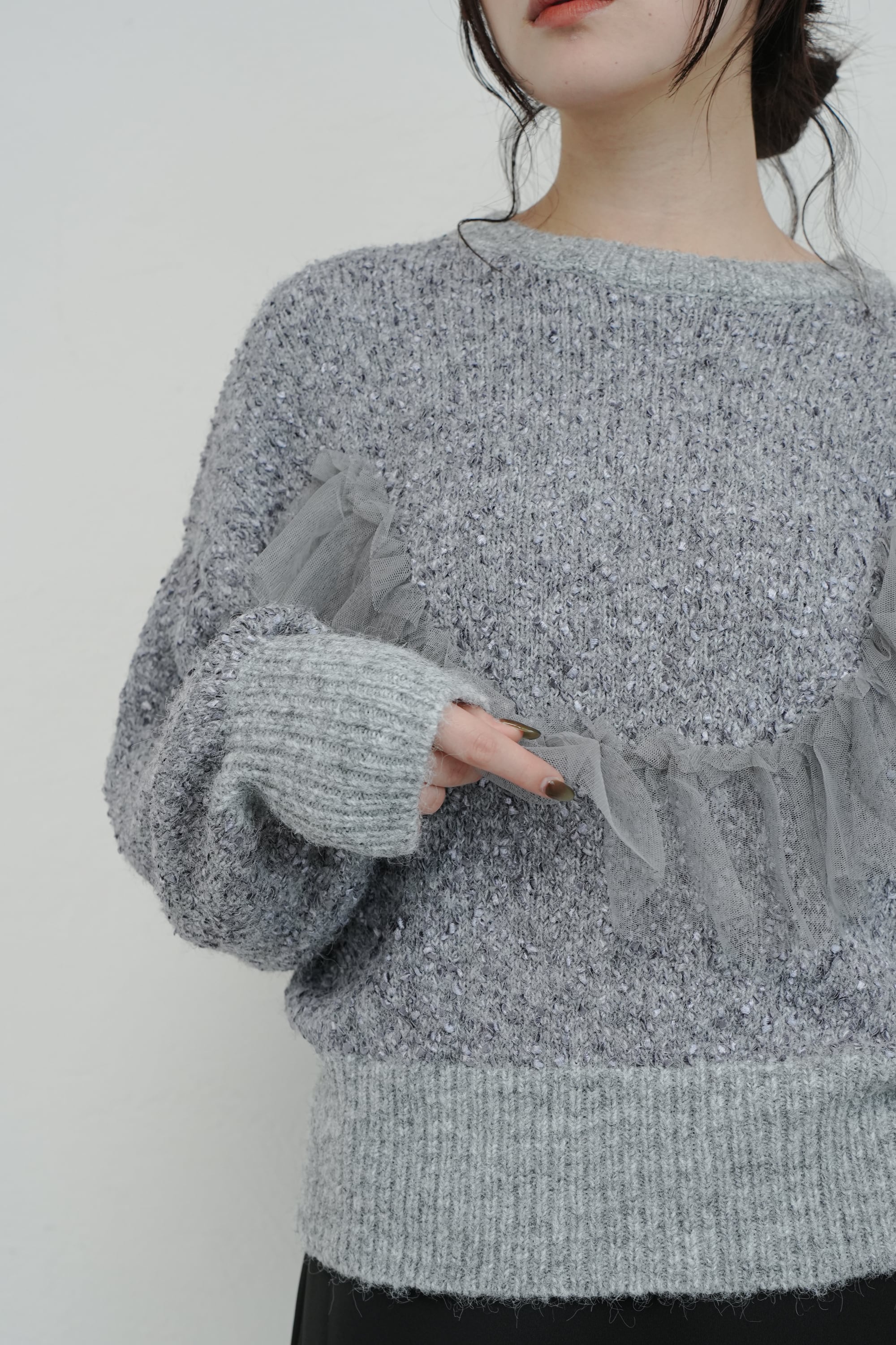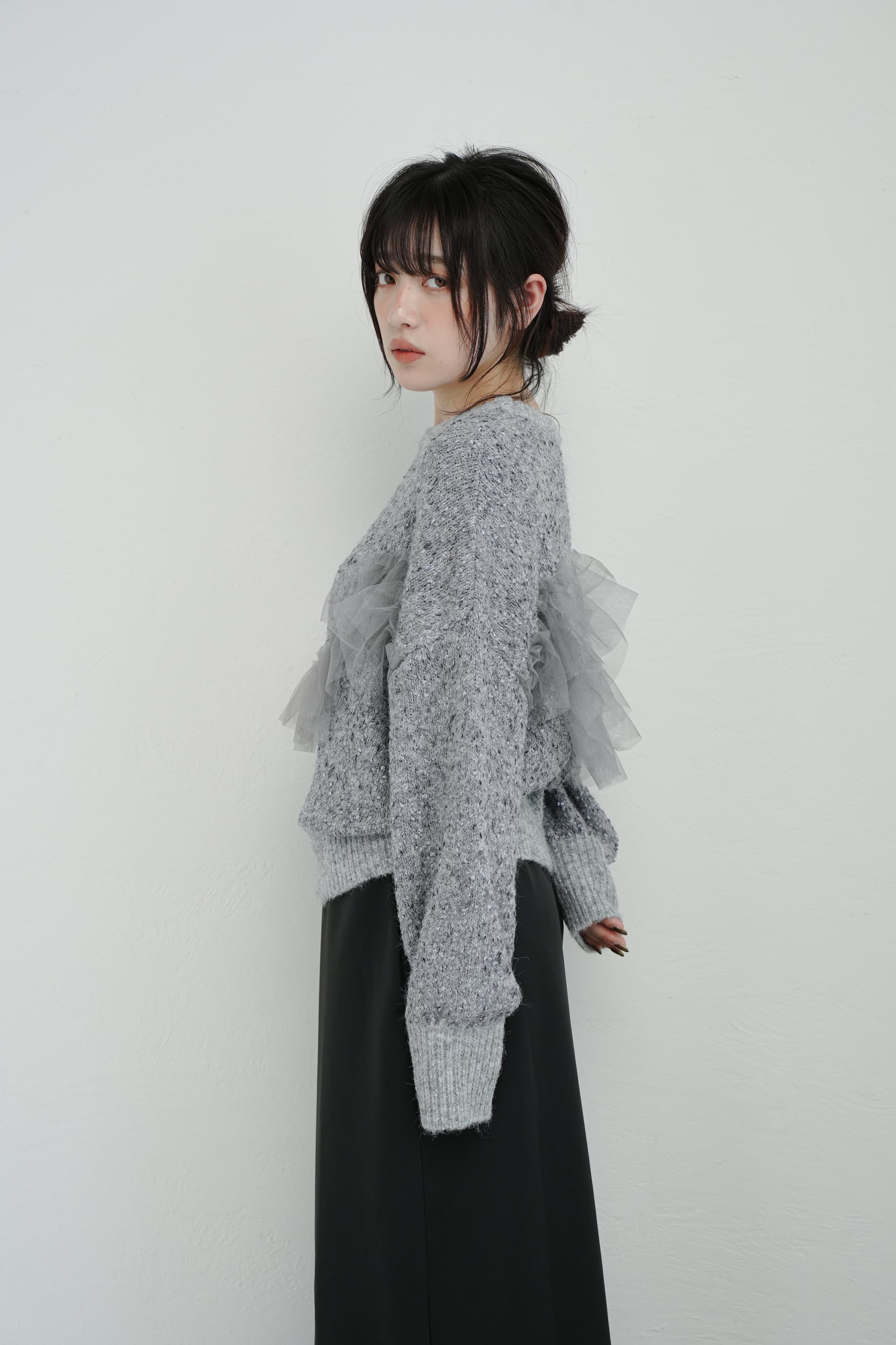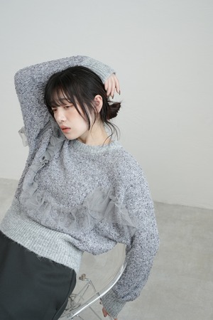 異素材のコントラストが魅力のチュールフリルのプルオーバー。