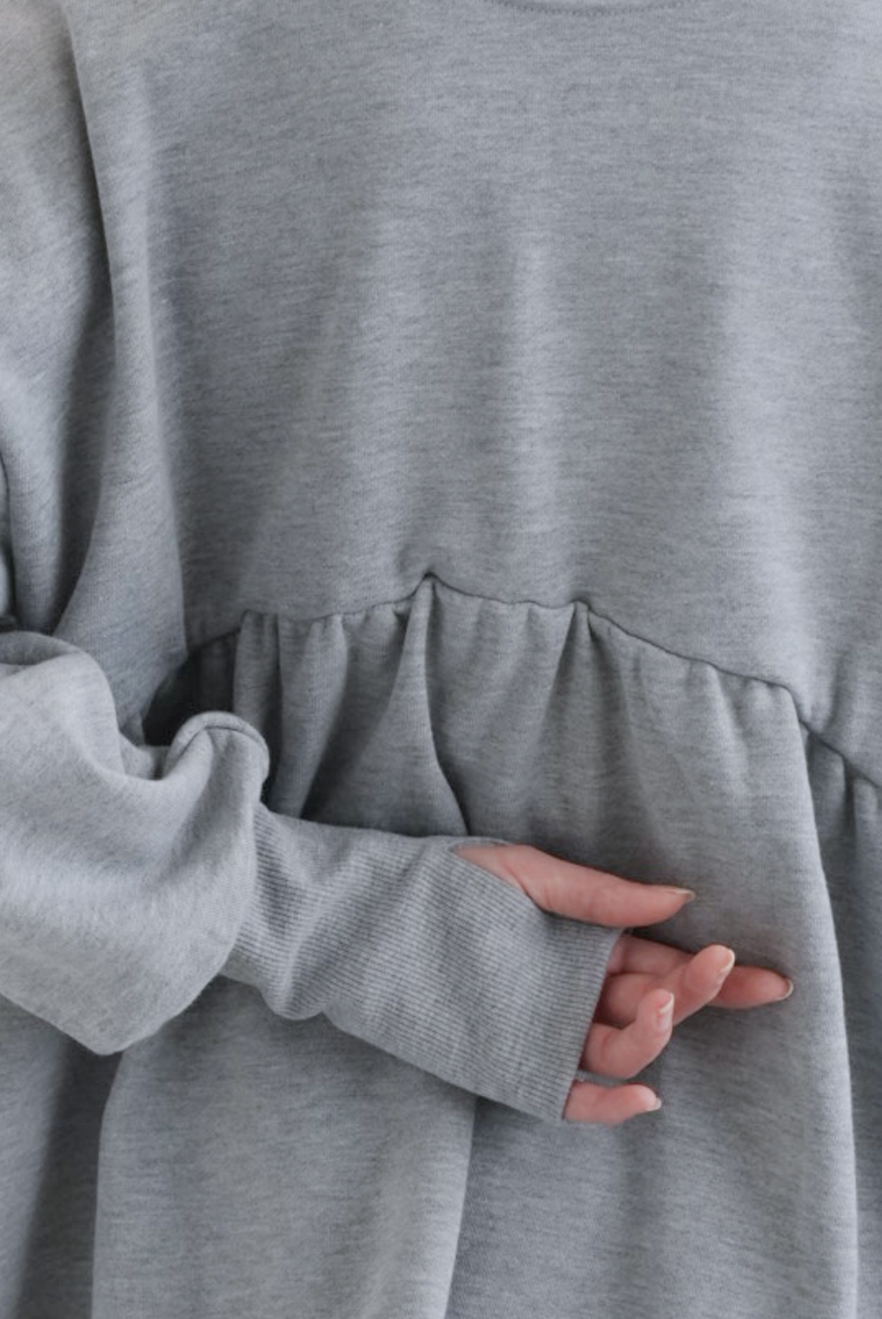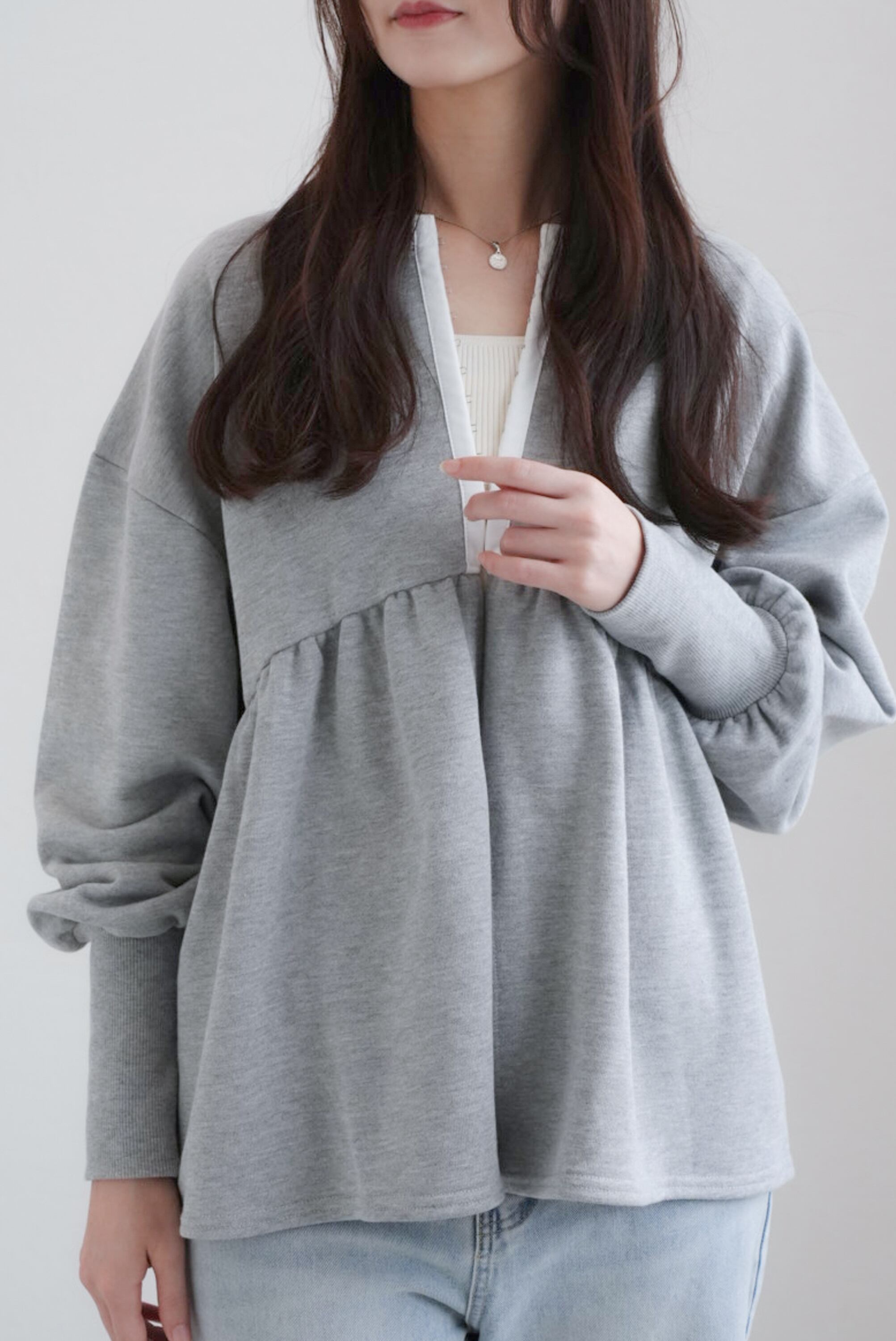 柔らかなスウェット素材とふんわりギャザーで、1枚で甘さと抜け感を演出。