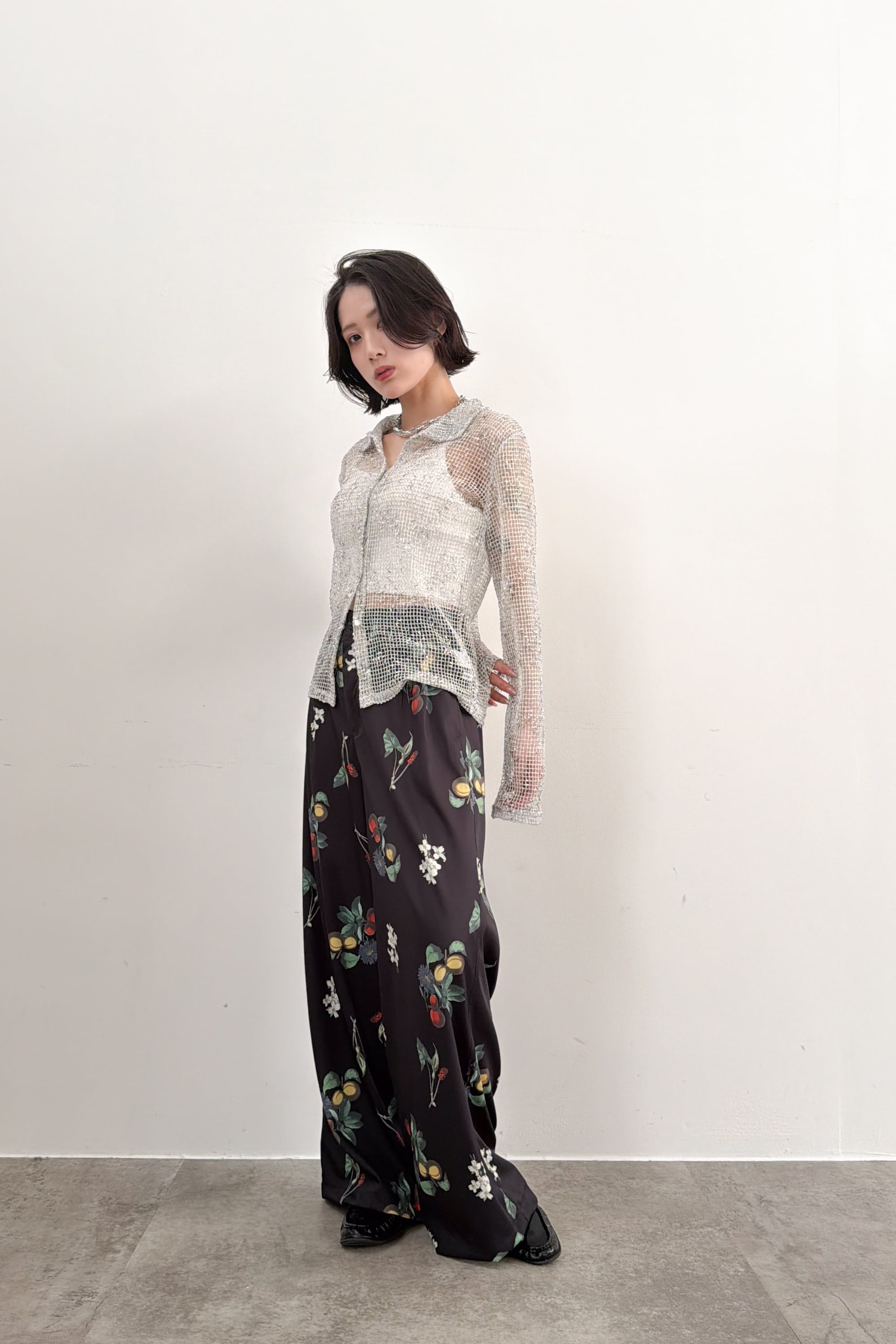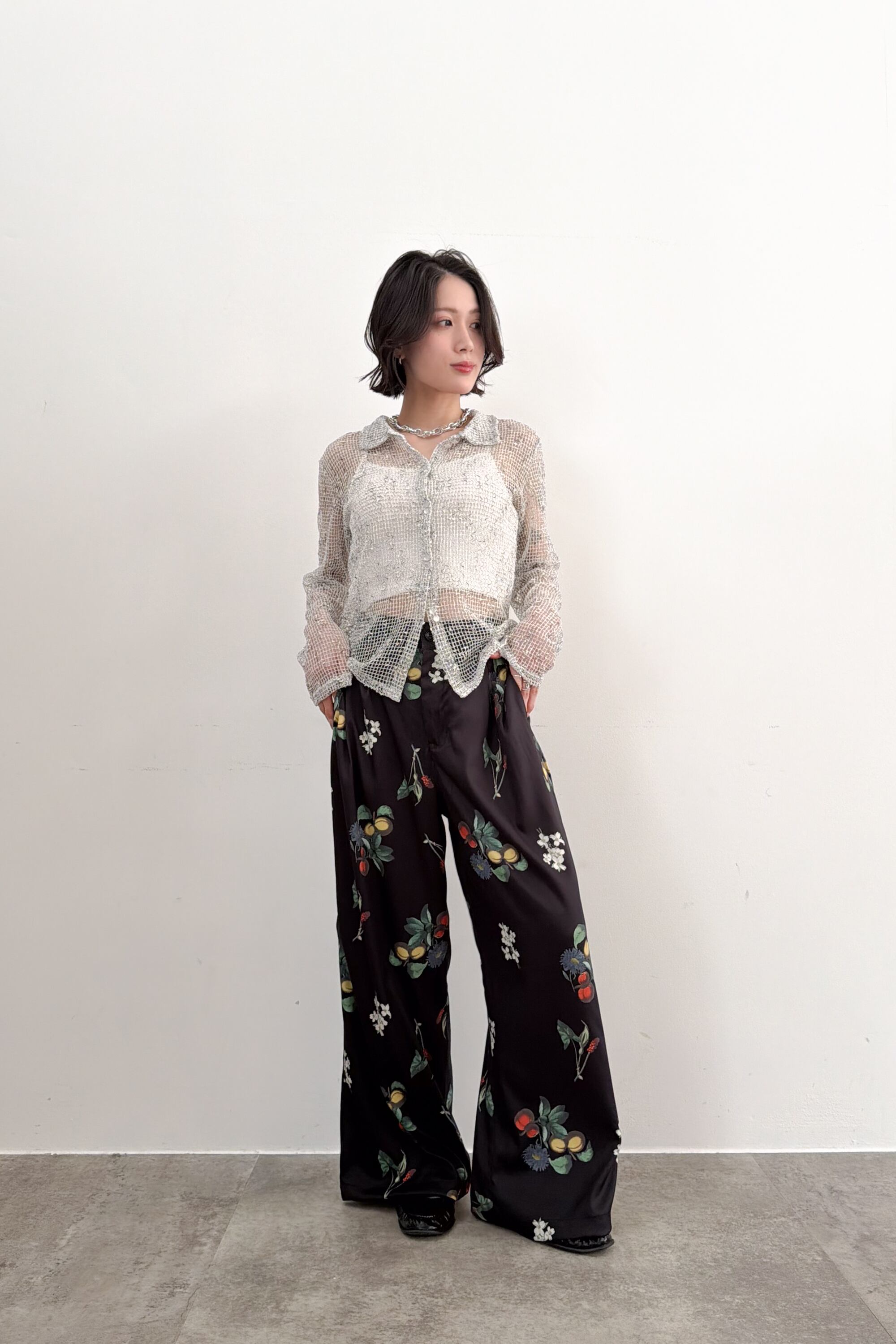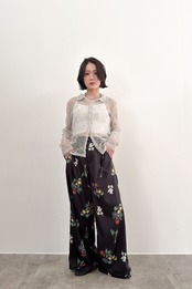 ・柄パンツと合わせて、抜け感のある華やかコーデに
