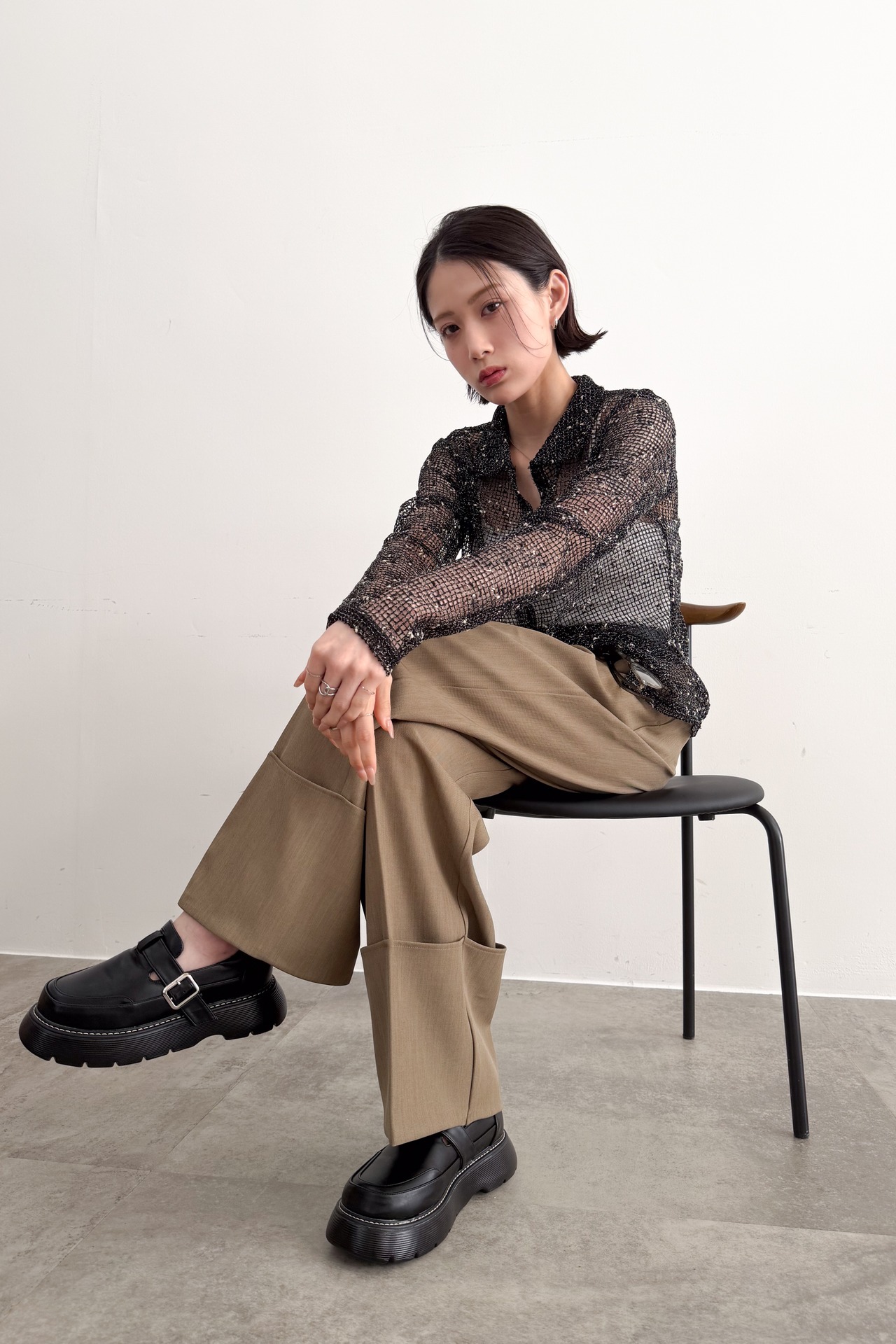 ・シアーやメッシュトップスと合わせて、抜け感のあるモードスタイルに
