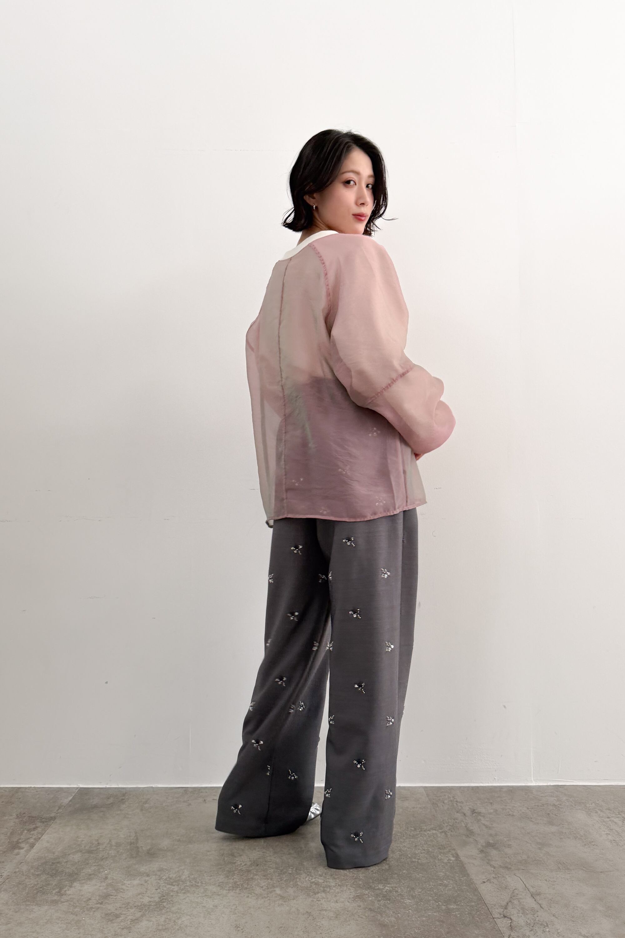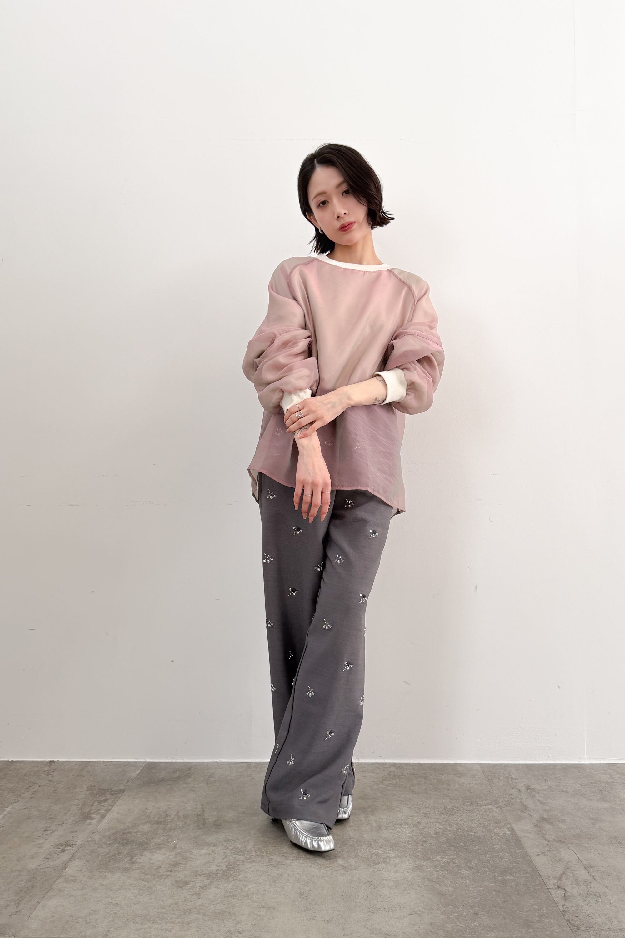 → 素材の抜け感とビジューのきらめきが好バランスでまとまります。